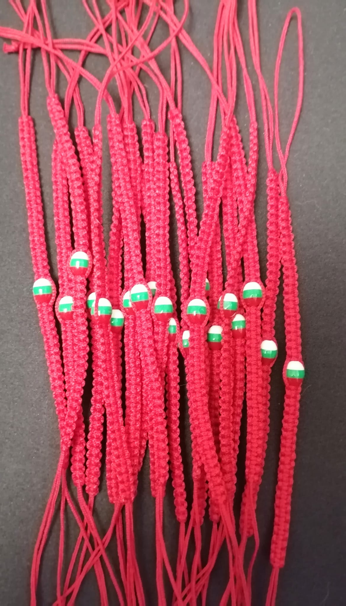 Гривни "Макраме" с червен конец "Трикольор"