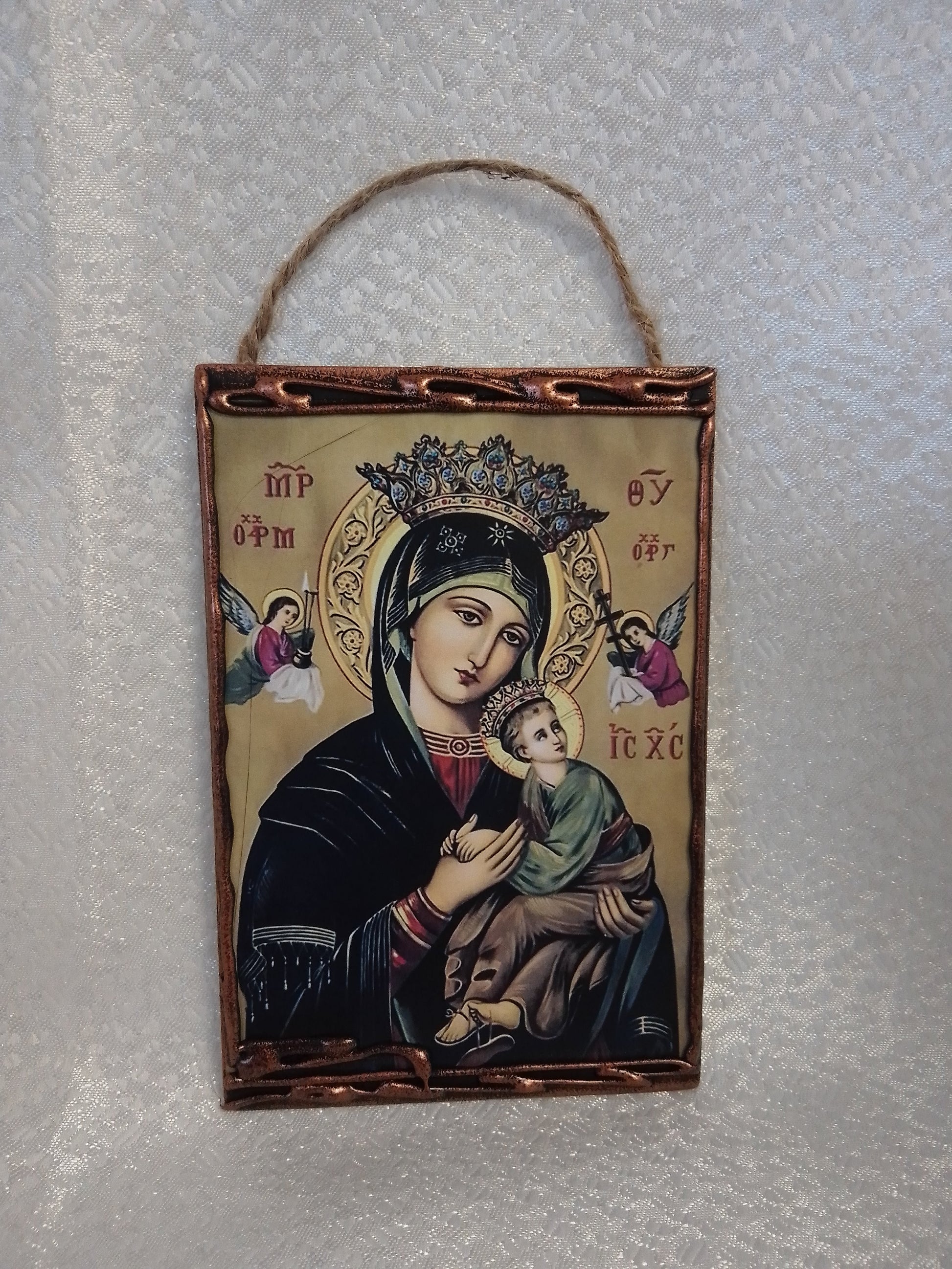 Малка картина за окачане "Богородица и младенеца" 9х13 см.