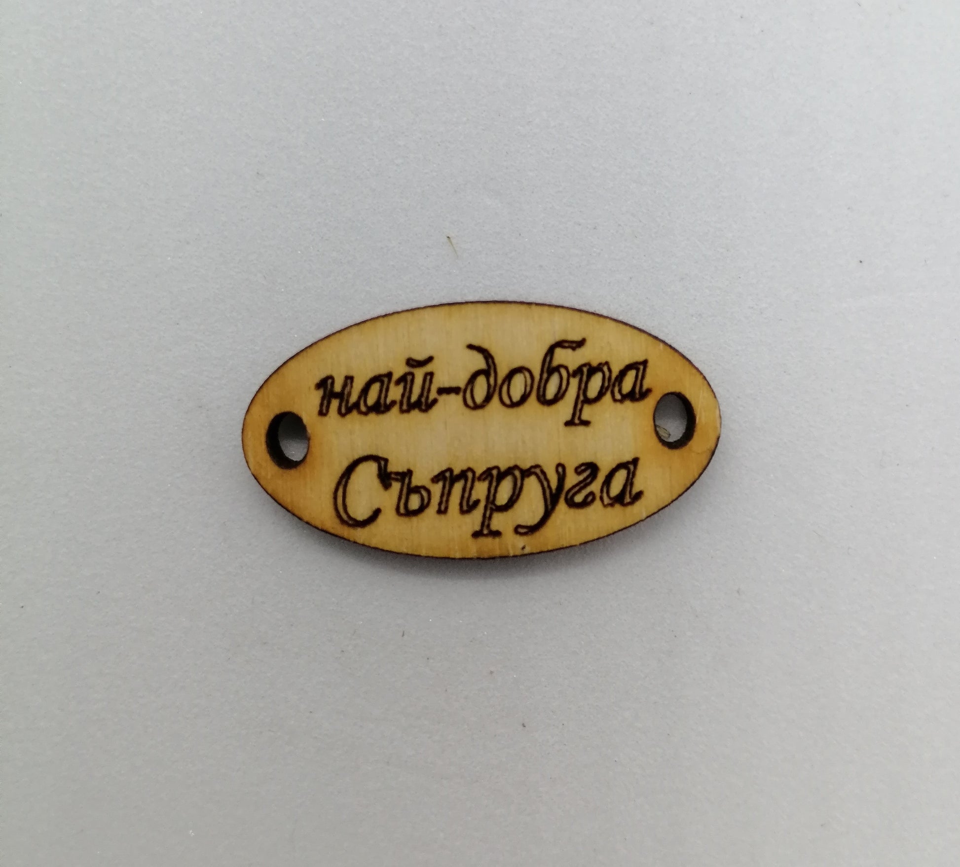 Дървена плочка "Най-добра Съпруга" за декорация на гривна - 10 броя.